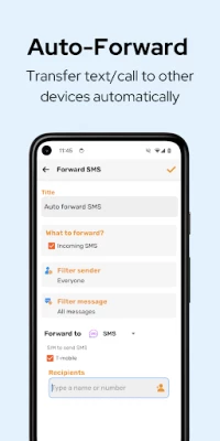 The application detects received SMS messages or phone calls and then applies user-defined rules to transfer the SMS/call details to other devices.