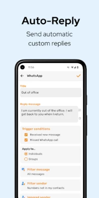 - This app uses Android Accessibility Services to automate sending scheduled messages on the user's behalf, and it will be only used for this purpose.