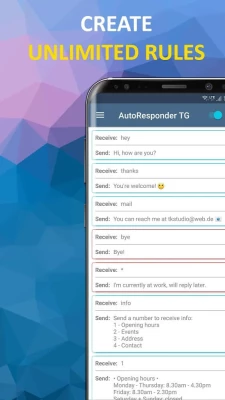 AutoResponder for Telegram will bring users features that automatically reply to all Telegram messages faster than anything else. What’s more, you’ll have plenty of options on how to set up and customize your replies to make them as engaging and unforgettable as possible. In addition, you will not need to spend money to buy a license for this application, and on the contrary, you will be able to download it for free with just one tap.