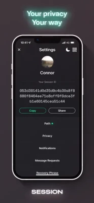 • Fully anonymous account creation: No phone number or email needed to create a Session ID