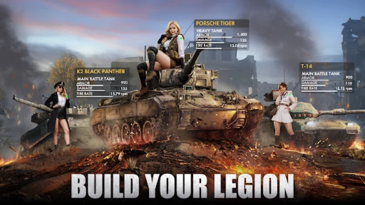 تحتوي اللعبة على 3 أنواع مختلفة من الدبابات (الخفيفة، الثقيلة، الشاملة) ليختار منها عشاق الدبابات. تم أيضًا تجهيز أنواع مختلفة من الدبابات بقادة جميلين من أنماط مختلفة، مما سيمنحك سمات مميزة لترقيات دباباتك ومعاركك.