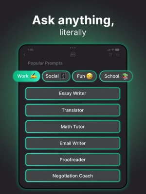 For school, AI is your convenient and instant learning assistant. It will act as your tutor or draft essay writer. The app can provide you with expert advice and guidance to help you achieve your academic goals.