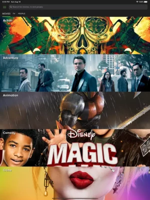 There is an explore section with all genres and a search function to search for any movie, TV series or actor.