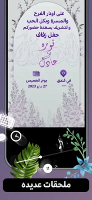 استفد من مكتبة غنية بالحركات للخطوط، ملصقات ومخطوطات عربية، وصور خلفيات ورمزيات لتخصيص دعواتك بطريقة فريدة. يدعم التطبيق إنشاء بطاقات لمختلف المناسبات مثل الزفاف، المواليد، أعياد الميلاد، رمضان، الأعياد الإسلامية، والتهاني والتبريكات.