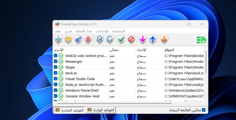 • حظر البرامج من الانترنت عبر الجدار الناري للويندوز بضغطة واحدة.