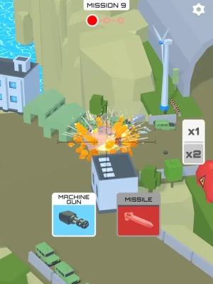 Protect your troops and defend your base! You are controlling an aircraft equipped with different weapons. Your mission is to prevent the enemy from conquering your base. You can destroy buildings and bridges and make cars and gas tank explode!