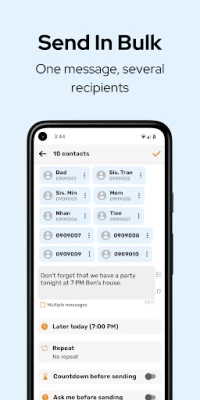 • Schedule recurring messages. Send repeated message by day, week, month or year.