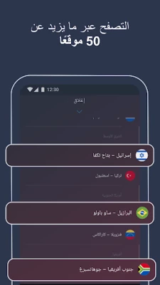 إلغاء حظر التطبيقات، والمحتوى، ومواقع الويب – تحظر بعض المواقع وموفرو المحتوى الوصول من مواقع معينة. باستخدام وكيل AVG Secure VPN لنظام تشغيل Android يمكنك إلغاء حظر هذه المواقع. اختر من بين خوادم متنوعة، تقع في دول ومواقع متعددة لتغيير عنوان IP الخاص بك.