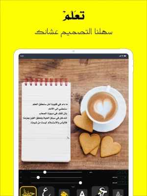 التطبيق ليس مجرد أداة تعديل صور فقط بل هو مخزن ضخم ل قوالب التصميم المتنوعة تساعدك في انتاج أفكار ل تصاميمك. خطوط التطبيق مصنفة لتتيح لك اخيار الخط المناسب لتصميمك. عشان ما يضيع تعبك كل التصاميم يتم حفظها بشكل تلقائي ليتسنى لك الرجوع اليها وتعديلها في اي وقت. نقوم بتحديث مكتبة الصور والملصقات بشكل مستمر ومواكب لجميع المناسبات المحلية والعالمية قبل حدوثها.