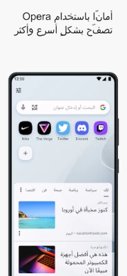 إن متصفح Opera عبارة عن متصفح ويب سريع وآمن مثالي لجهازك الذي يعمل بنظام التشغيل Android، وهو مزوَّد بموجز أخبار مُجدَّد وحاجب إعلانات وVPN مجاني، وجميعها ملحقات مدمجة به.