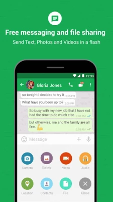 • شبكة اجتماعية: شارك مقاطع فيديو, صور وملفات ومشاركات تحديد الموقع وبيانات الاتصال. اتصل بالمستخدمين الآخرين بسهولة؛ وانضم إلى الجروبات والقنوات باستخدام مسح رمز الاستجابة السريعة. وشارك ما تشاء على السوشيال ميديا و المزيد من المميزات الاخرى.