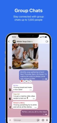 • Stay connected with group chats up to 1,000 people. Control who can post and manage group members with admin permission settings.