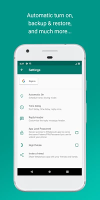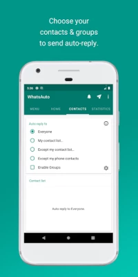 Customise the reply time. You can set WhatsAuto to send auto reply continuously or to send after some time delay or to send only once.