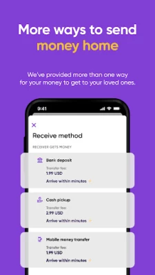 Depending on where you're sending to - the app offers you a choice of ways to transfer money; cash pickup, mobile money, bank transfer and airtime top up.